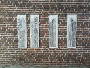 Auch die Holzmaserung drückt sich als feines Liniengeflecht auf dem Papier ab und bezeugt die Materialität ihres Ursprungs. Die Plastiken, die wir hier sehen, sind lediglich der letzte Zustand einer langen Entwicklung. Sie sind Zeugen eines Schaffensprozesses, der in seinem Verlauf stetig neue Bilder hervorbringt. Sie treten uns als Gestalten mit eigener Vergangenheit und Gegenwart gegenüber. In der Dimension der Zeit, die die Skulpturen in sich einschließen, liegt auch ihre Verwandschaft zur Musik und zur Erzählung, zwei Künsten, die nur im Zeitverlauf erfahrbar sind. Vielleicht ist es kein Zufall, dass eine der Stelen Klio, die Muse der Geschichtsschreibung und eine andere Melpomene, die singende Muse der Trauerdichtung zeigt.