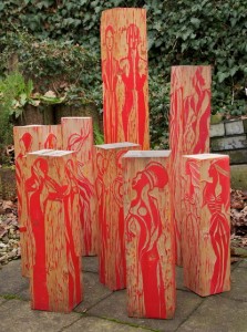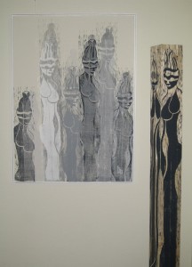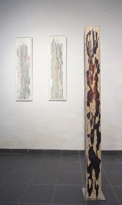 Bei meinen HolzSTELEN (Leimbinderblöcke) , mit ihren Maserungen und wichtigen Lebensspuren, dienen mir zugleich als Druckstock und wurden mit der Zeit zu einem Teil meiner Werke.