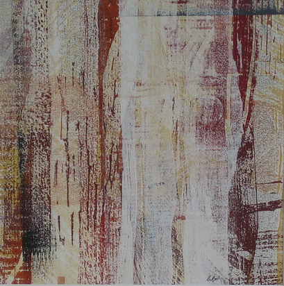 Tritt man näher an die Unikatholzdrucke heran, sind in den Farbflächen feine Linearmente und Maserungen zu sehen, die ihren Ursprung in den Druckstöcken erkennen lassen. Es gelingt, den Handabzügen, eine raumgreifende Wirkung zu verleihen, so dass man von einem malerischen Umgang mit der Holzschnitttechnik sprechen kann. Dieses alte Holzdruckverfahren ist, auch heute noch, ein zeitgemäßes und geeignetes Medium um meine künstlerische Idee umzusetzen.
